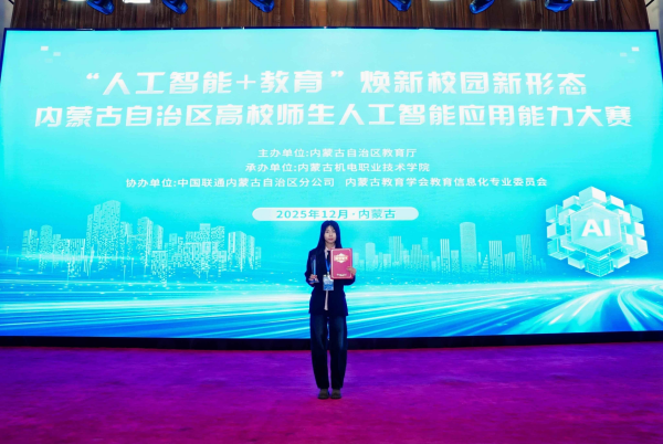 12月19日—21日,由内蒙古自治区教育厅主办、内蒙古机电职业技术学院承办的自治区高校首届师生人工智能应用能力大赛举办。本次大赛以“人工智能+教育”焕新校园新形态为主题,旨在深入贯彻落实国家教育数字化战略行动,推动内蒙古自治区教育教学改革与数字化转型向纵深发展。通辽职业学院信息技术系学生鹿景博、陈佳兴、贾雪凭借扎实的专业基础、努力刻苦的钻研精神、稳定的现场发挥,最终荣获二等奖,展现了年轻学子拼搏向上的奋斗精神和良好的精神风貌。