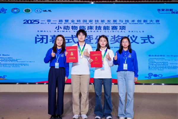 学生在2025一带一路暨金砖国家技能发展与技术创新大赛首届“小动物临床技能”赛项国内总决赛中荣获三等奖