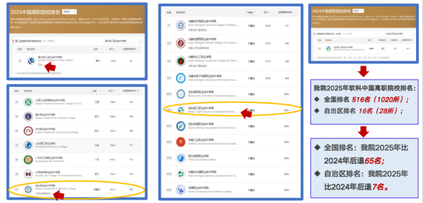 包头轻工职业技术学院2025年与2026年软科中国高职院校排名对比
