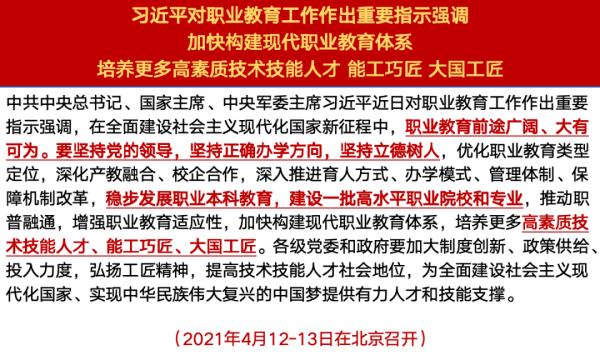 《关于推动自治区现代职业教育高质量发展若干措施的通知》中提到,大力发展职业本科教育,重点支持国家和自治区“双高计划”学校组建职业本科院校,推动职业技术师范本科学校建设。