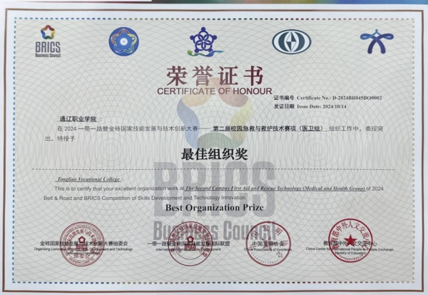 近年来,学院在各级各类急救相关赛事中屡创佳绩:承办全国第三届现场救护技能大赛并斩获8项一等奖;代表内蒙古自治区参加全国职业院校技能大赛护理赛项,荣获团体一等奖。尤其在2024年举办的“一带一路”暨金砖国家技能发展与技术创新大赛校园急救与救护技术决赛中,学院代表队从68支参赛队伍中脱颖而出,荣获一等奖,学院同时获得优秀组织奖。这些成绩充分检验了学院急救教育的成效与师生的专业水准。