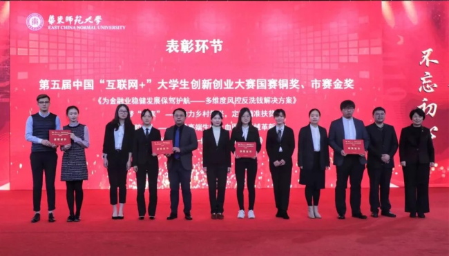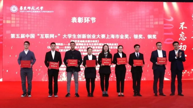 2019年,在第五届“互联网+”大学生创新创业大赛上,华东师大从124个国家和地区的109万个团队中脱颖而出,勇夺2金2银4铜,创造历史最好成绩,金奖数、获奖总数位列上海高校第一,金奖总数进入全国第八。