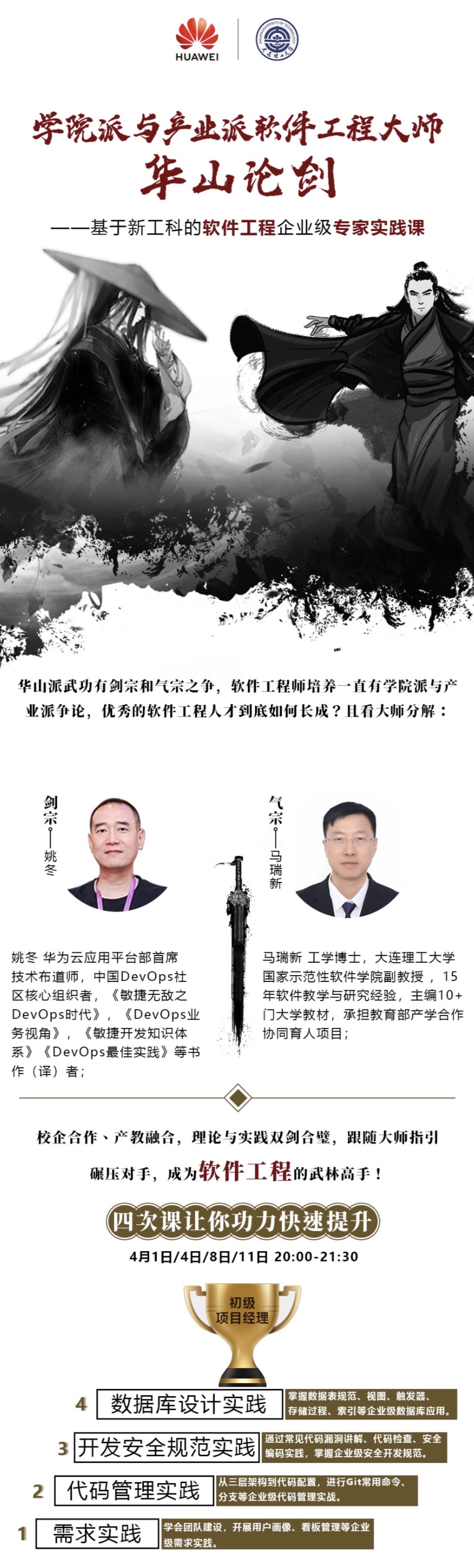大连理工软件学院携手华为云,推出“基于新工科的软件工程企业级专家实践课”,从学院派和产业派的视角讲述软件工程的故事,通过解刨软件工程,从人才培养的视角解读软件工程师成长的点点滴滴。