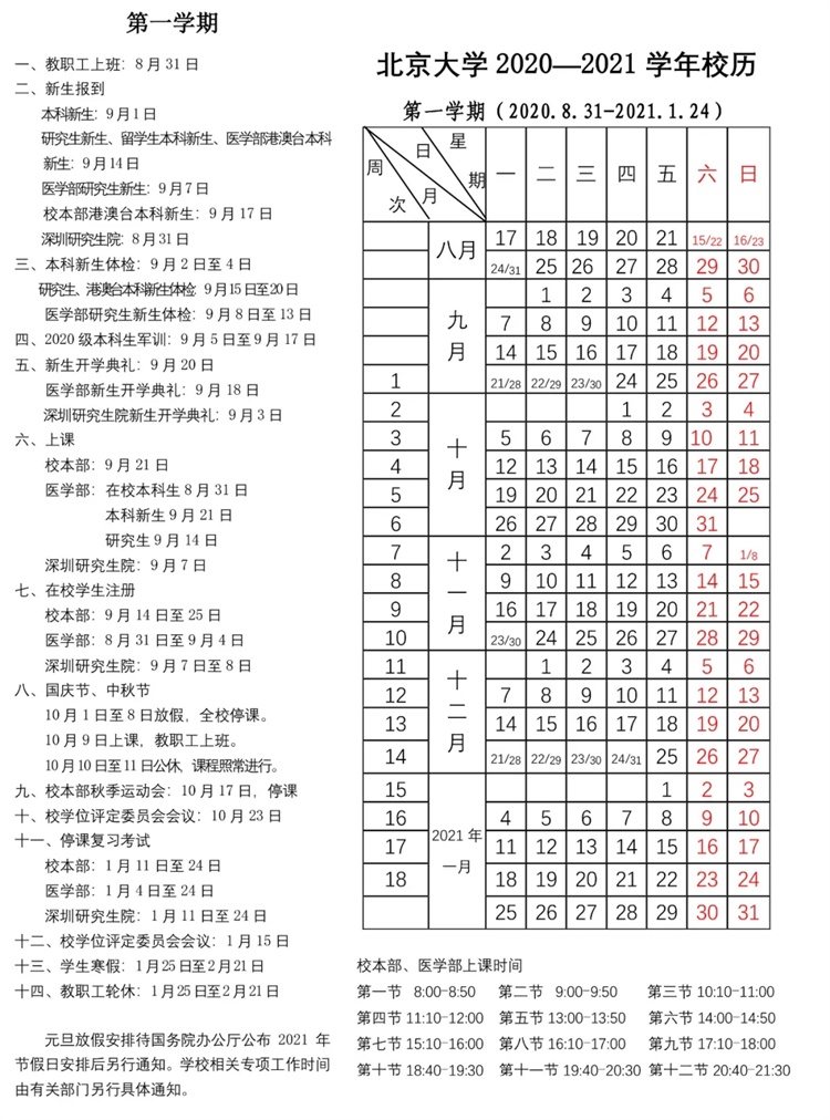 研究生新生、留学生本科新生、医学部港澳台本科新生:9月14日