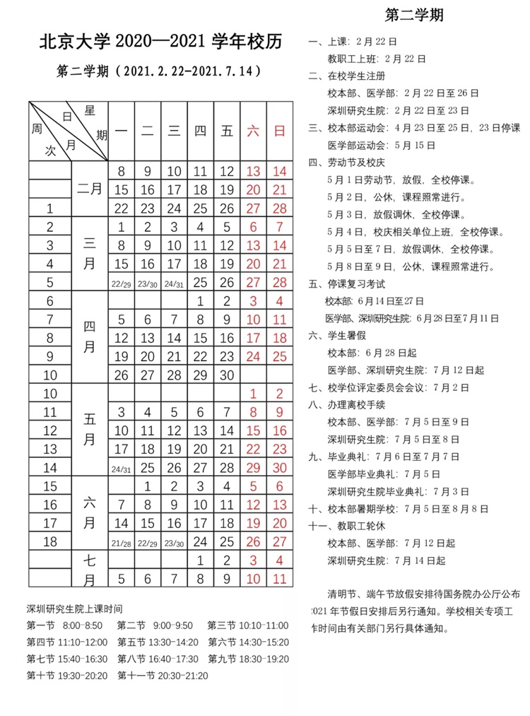 清明节、端午节放假安排待国务院办公厅公布2021年节假日安排后另行通知。学校相关专项工作时间由有关部门另行具体通知。