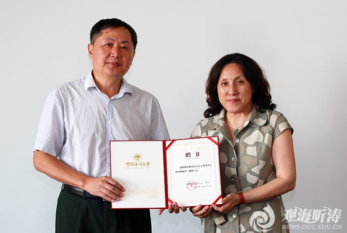 8月31日下午,中国科学院院士、解放军保密委员会技术安全研究所郑建华研究员受聘中国海洋大学特聘教授仪式在行远楼第一会议室举行。仪式开始前,于志刚校长与郑建华院士进行了会谈。闫菊副校长为郑建华院士颁发聘书。