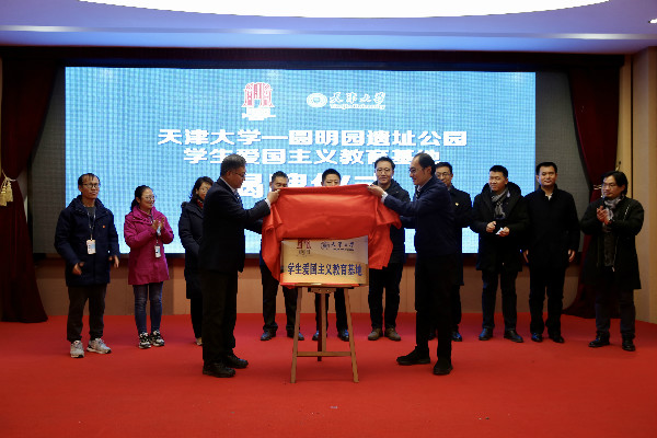 随后,双方共同为学生爱国主义教育基地揭牌。圆明园相关领导、嘉宾与天津大学师生就爱国主义教育活动、科研项目合作、实习实践等问题进行了座谈交流。