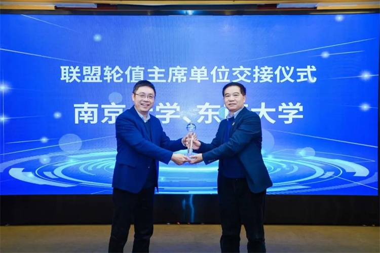 南京大学与东南大学完成联盟轮值主席单位交接仪式,由东南大学担任江苏省技术转移联盟2021年轮值主席单位。南京大学双创办副主任周剑峰发布了联盟“技术转移工作创新与促进奖”结果。
