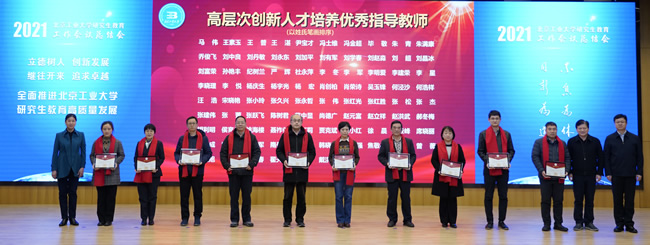 大会表彰了一批近年来奋战在研究生教育一线、培养出优秀研究生的指导教师,授予校级优秀博士、硕士学位论文研究生导师“高层次创新人才培养优秀指导教师”荣誉称号,为近三年来获得一级学会行业优秀博士学位论文研究生指导教师颁发“高层次创新人才培养突出贡献奖”。