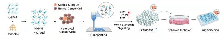 图1. 3D打印GelMA-nanoclay水凝胶诱导富集肿瘤干细胞示意图