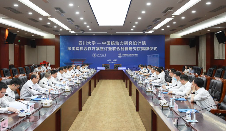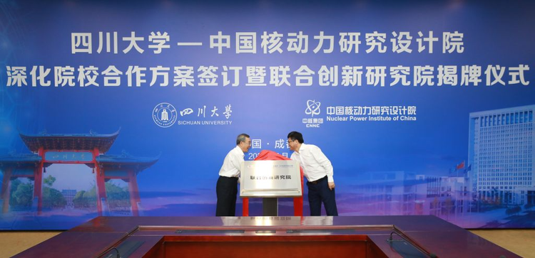 5月7日,四川大学与中国核动力研究设计院深化院校合作方案签订暨联合创新研究院揭牌仪式举行。中国核动力研究设计院党委书记万钢、院长王丛林、顾问周定文,校党委书记王建国、副校长褚良银,及校院双方相关单位负责人参加仪式。仪式由周定文主持。