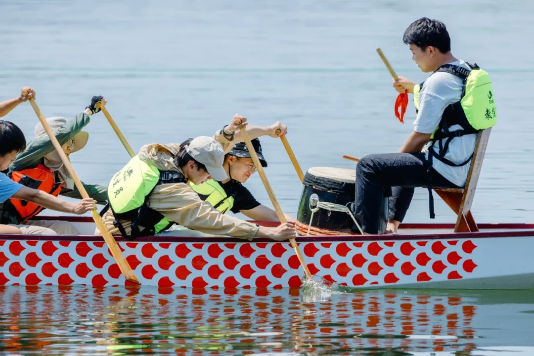 首次下水划龙舟,真切感受到水带来的阻力,让每一次划桨都充满挑战,相较于岸上练习,这种体验更为辛苦却也令人兴奋。在划行过程中,由于初次配合,船身时而晃动,但也正是这种挑战增加了团队的凝聚力。而最让我感到有趣的是,清凉的河水不仅振奋了精神,更为这次体验增添了一份别样的乐趣。龙舟课,不仅是一次身体的锻炼,更是一次心灵的洗礼。