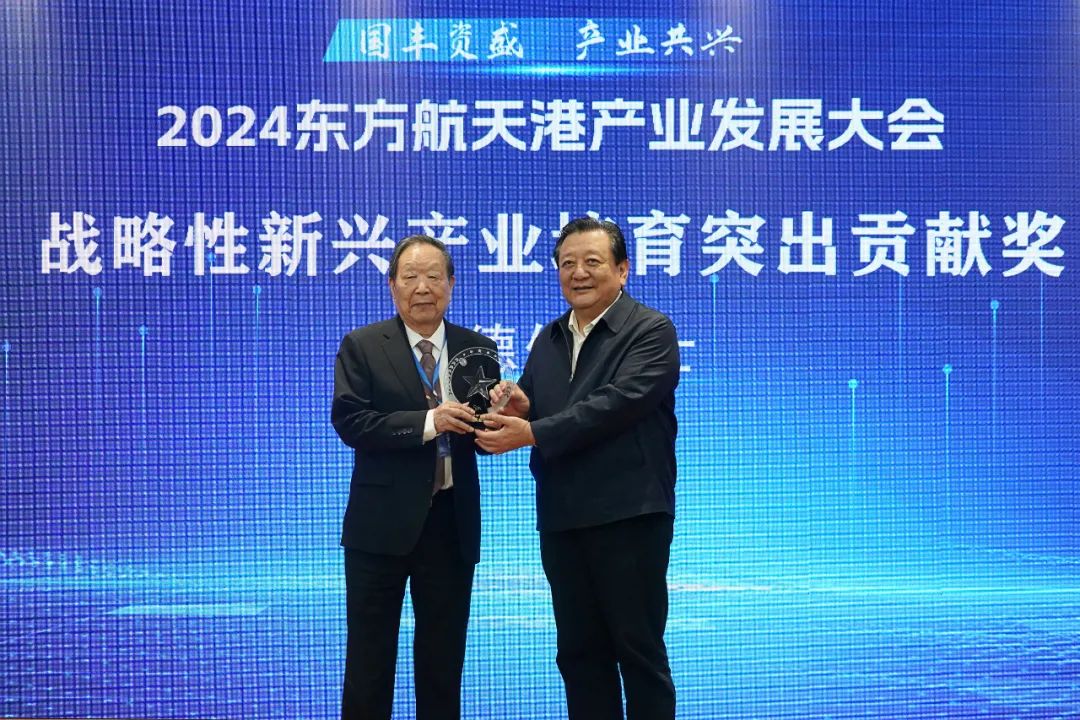 武汉大学测绘遥感信息工程国家重点实验室副主任王密作东方慧眼星座能力建设情况报告。他简要回顾了东方慧眼星座的发展历程,汇报了东方慧眼星座一期能力建设的总体部署,并介绍了二期工程建设的方案策划。会上,江成为李德仁颁发“战略性新兴产业培育突出贡献奖”奖杯。会议结束后,与会领导嘉宾共同见证了武汉大学“人民健康号”卫星在东方航天港海上发射。