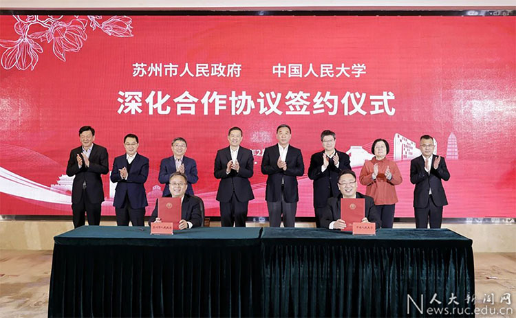 中国人民大学与苏州合作基础坚实。自2003年首次签署合作协议以来,双方合作建设了国际学院(苏州研究院)、中法学院、丝路学院,成立了中国人民大学苏州校区,成功举办了“人文经济苏州论坛”等。