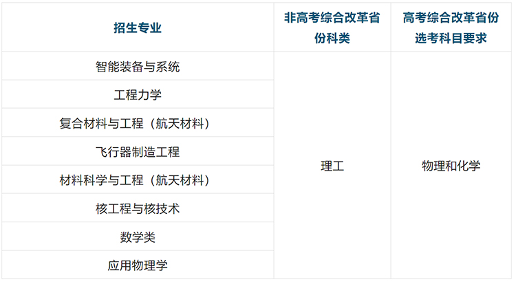 【复合材料与工程(航天材料)】专业,依托航天学院培养。培养信念执着、德才兼备、知识丰富、本领过硬,具有深厚的数理基础和材料科学与工程基础专业知识,具备在航天材料领域研究开发和创新实践的能力,兼具科学精神、领导能力和终身学习能力,能够引领未来航天材料科学与工程及相关领域发展的拔尖创新人才。