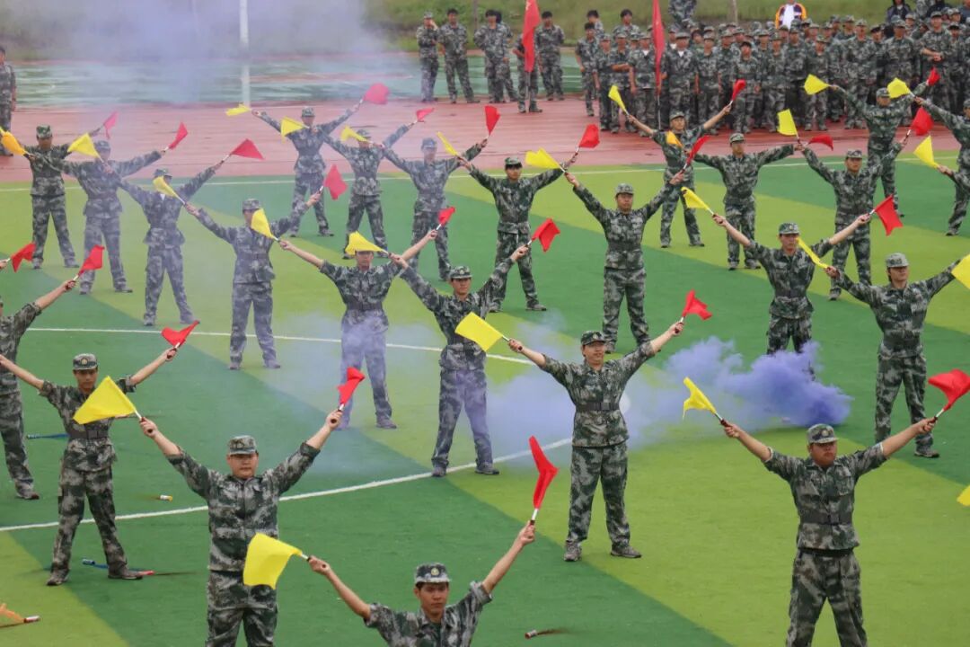 国歌奏响的瞬间,全场肃立,嘹亮歌声冲破云层。身着迷彩服的新生们身姿挺拔,目光如炬,稚嫩脸庞上写满坚毅,与天空下猎猎作响的国旗共同勾勒出一幅热血画卷。