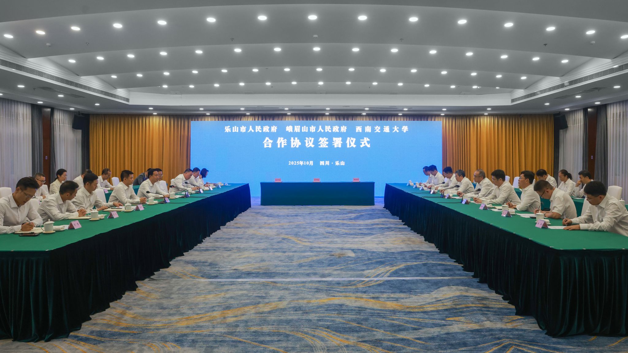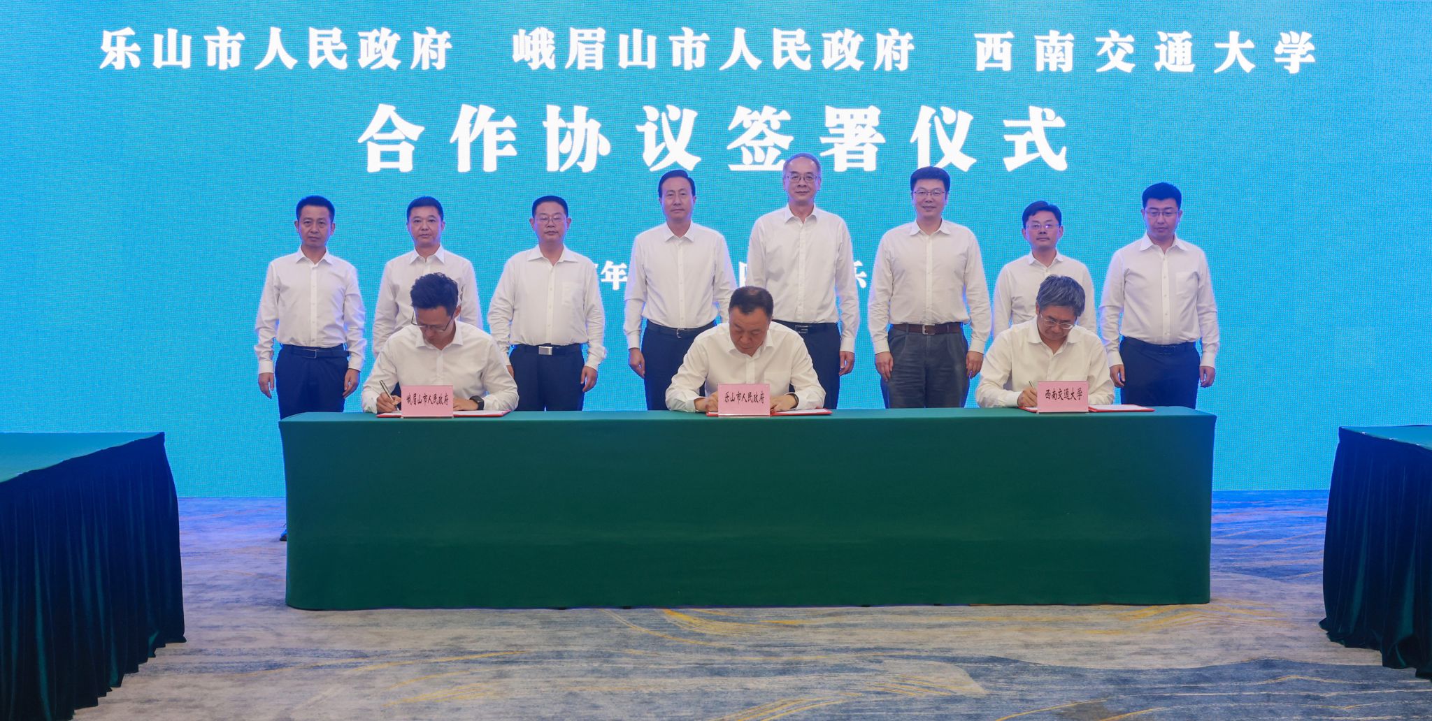 10月10日,西南交通大学、乐山市人民政府、峨眉山市人民政府合作协议签署仪式在乐山举行。乐山市委书记赵波,副书记文甦,副市长廖沂,峨眉山市委书记、峨眉山景区党工委书记李良,峨眉山市委副书记、市人民政府市长彭警,西南交通大学党委书记余敏明,校长闫学东,党委常委、副校长康国政、刘长军,校长助理宋新出席仪式。乐山市委副书记、市长赵迎春主持仪式。