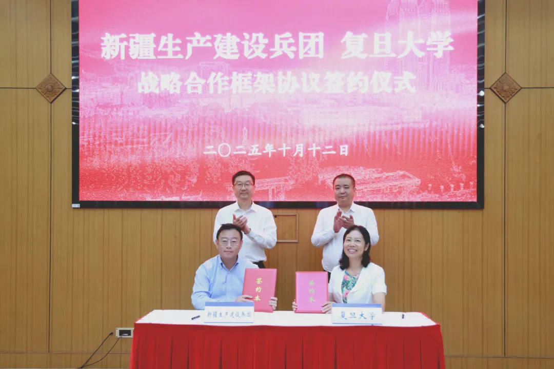 10月12日,新疆生产建设兵团 复旦大学战略合作框架协议签约仪式在复旦大学逸夫科技楼二楼多功能厅举行。双方建立战略合作,服务新疆和兵团经济社会高质量发展以及复旦大学“双一流”建设。