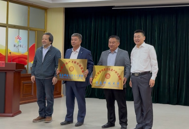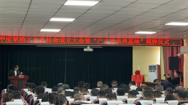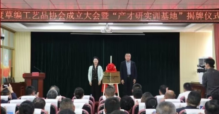 一麦一草,指尖传承;一编一织,产学交融。2025年10月16日,平度草编工艺品协会揭牌成立暨“产才研实训基地”授牌仪式在新河镇隆重举行。青岛科技大学艺术学院院长李宏文、山东省非物质文化遗产研究基地·青岛科技大学(以下简称“省非遗基地”)执行主任于瑞强受邀参加。平度市人大常委会副主任、组织部副部长、市直相关部门主要负责人、新河镇党政领导班子和协会成员参加,李宏文和新河镇党委书记付强分别致辞,大会由新河镇镇长刘毅主持。