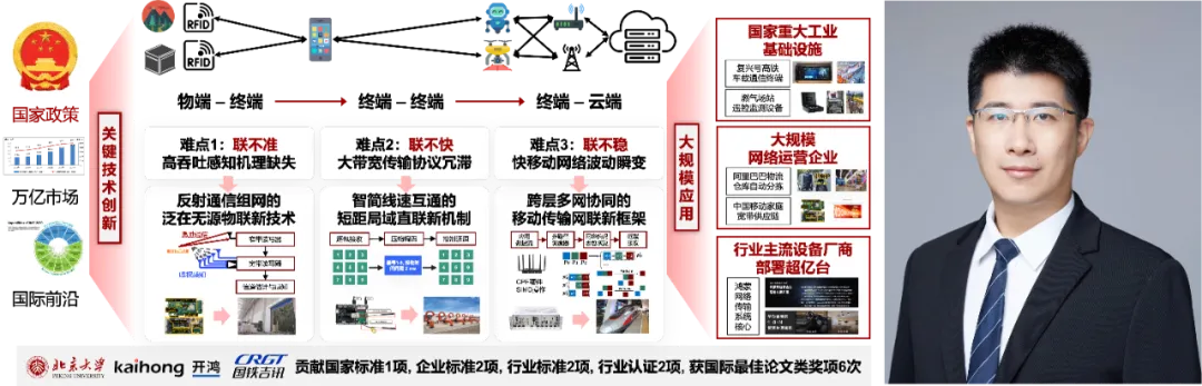 本项目围绕移动物联网“联不准、联不快、联不稳”的性能瓶颈,突破了基于反射通信的局域无源物联、线速组网的邻域智简直联和跨层协同的广域多路网联等核心关键技术,研制了具有自主知识产权的移动物联网高性能感知互联系统。成果应用于华为鸿蒙系统、复兴号高铁、阿里物流等场景,有力支撑国家重大工程与数字经济发展。结合低空经济、具身智能等新兴领域及“5G+、机器人+、人工智能+、工业互联网+”等重点场景培育部署,移动物联网“物端”到“云端”的高性能智慧互联基座可适配低空高密度物流、工业机器人、人形机器人进工厂等多领域需求,提升复杂、危险、恶劣环境下智能作业的水平,进一步释放应用潜力。项目将持续紧跟国家重大需求,推动规模化落地与成果迭代,为新型工业化、新质生产力发展注入动力。