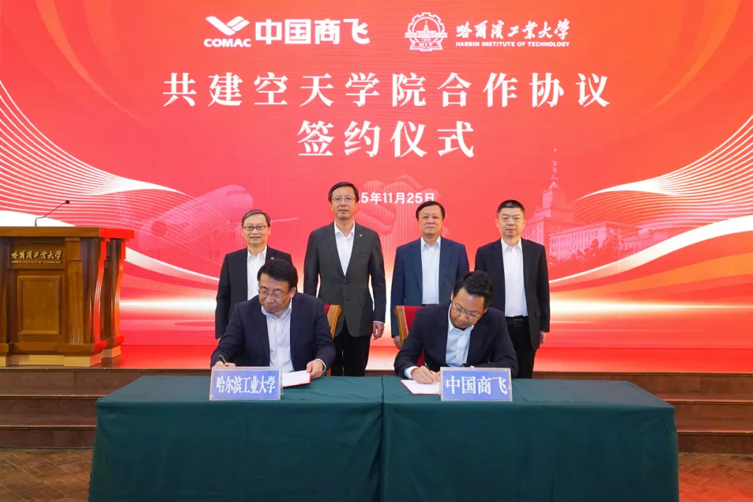 11月25日,哈尔滨工业大学与中国商用飞机有限责任公司(以下简称“中国商飞”)举行共建空天学院合作协议签约仪式。