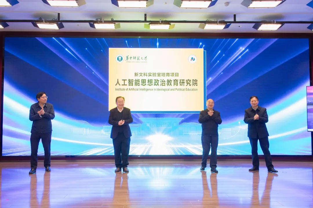 开幕式上,冯刚、乔志强、谢守成、刘宏达共同为华中师范大学人工智能思想政治教育研究院揭牌。该研究院致力于构建人工智能思想政治教育大模型,打造思政课信息聚合与发布平台、高校思政课数字教学资源与应用平台、大中小学思政课一体化建设与教学平台、思想政治教育质量综合评价与反馈平台、实践活动与育人服务平台等五位一体的思想政治教育智能教学平台体系,推动“人工智能+思政教育”的创新融合发展,为思想政治教育学科发展、人才培养、学术研究等提供强大支撑。