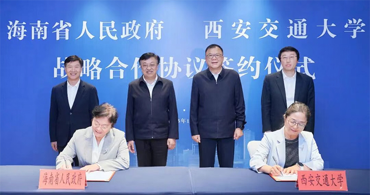 12月12日,海南省政府与西安交通大学在海口签署战略合作协议,省委书记冯飞、省长刘小明,西安交通大学党委书记卢建军、校长张立群一同见证签约。
