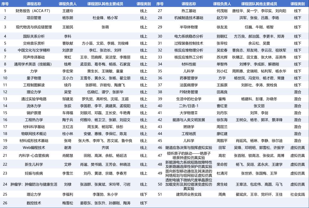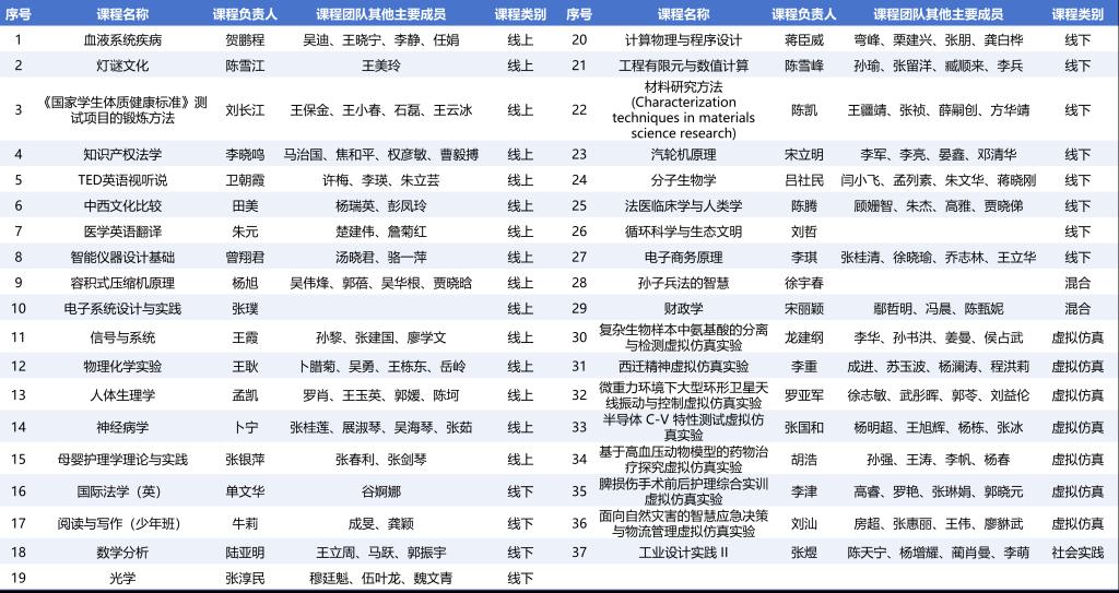 近日,教育部公布了第三批国家级一流本科课程认定结果名单,西安交通大学共有37门课程入选,包括线上课程15门、线下课程12门、线上线下混合式课程2门、虚拟仿真课程7门、社会实践课程1门。