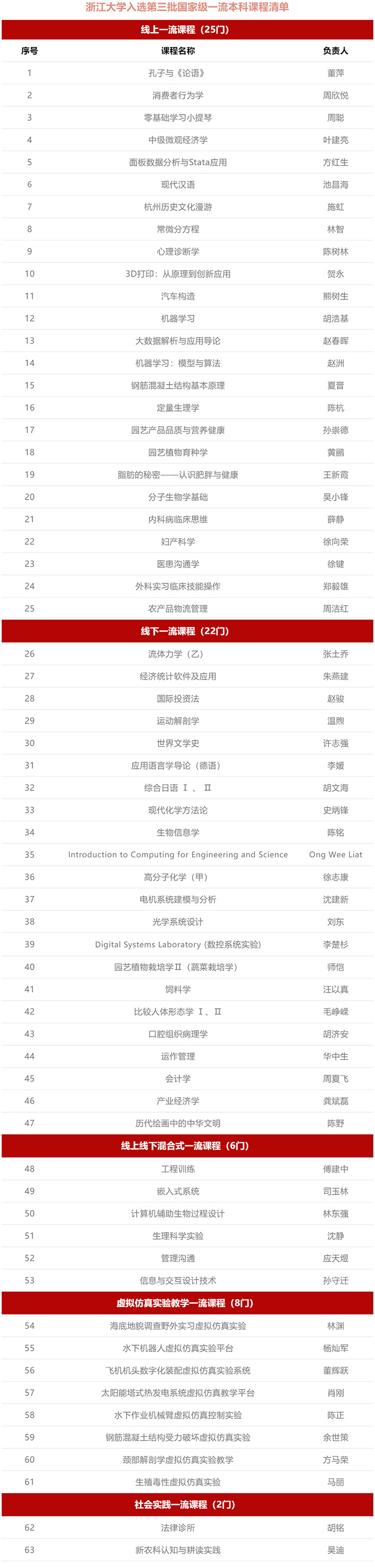 全国第一!浙江大学63门课程入选第三批国家级一流本科课程