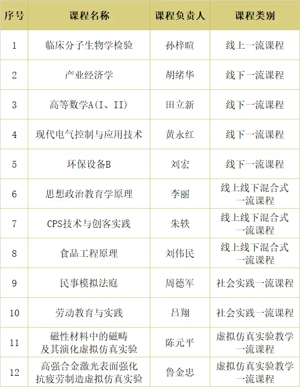 江苏大学12门课程入选第三批国家级一流本科课程!