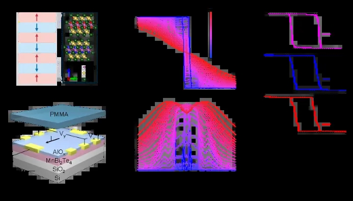 MnBi2Te4作为首个同时具有二维结构、本征反铁磁序与能带拓扑性的材料,引起凝聚态物理领域的广泛关注。王亚愚团队和其他团队此前的研究已经观测到新奇的量子态,但器件质量欠佳制约进一步系统深入的研究。王亚愚、张金松团队历经5年攻关,在单晶生长、器件制备和表征等方面做出大量探索,大幅改善器件质量与可重复性。在7层MnBi2Te4器件中,团队成功获得零场量子化霍尔电阻平台,系统揭示二维反铁磁体系特有的多种自旋构型对拓扑输运的调制作用,并发现面内磁场可增强量子反常霍尔效应的矫顽场与量子化水平,为拓扑量子相变和器件应用研究带来新的启示。研究成果发表于《自然》。