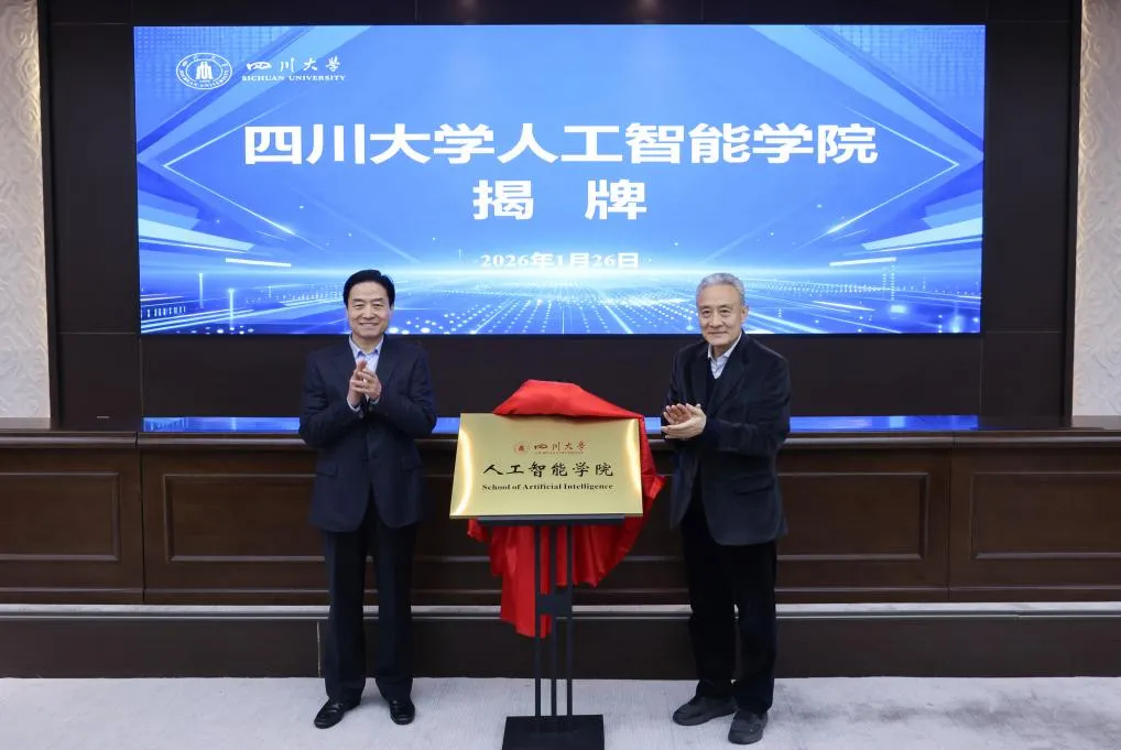 甘霖、汪劲松为“四川大学人工智能学院”揭牌。