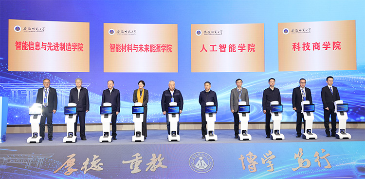 揭牌仪式上,学校正式宣布成立智能信息与先进制造学院、智能材料与未来能源学院、人工智能学院等3个新工科学院和科技商学院。