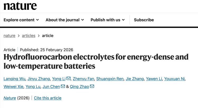 北京时间2月26日凌晨,国际顶尖学术期刊《自然》(Nature)在线发表南开大学化学学院研究员赵庆,中国科学院院士、南开大学常务副校长、特种化学电源全国重点实验室主任陈军,联合上海空间电源研究所研究员李永在高比能锂电池领域的最新研究进展。