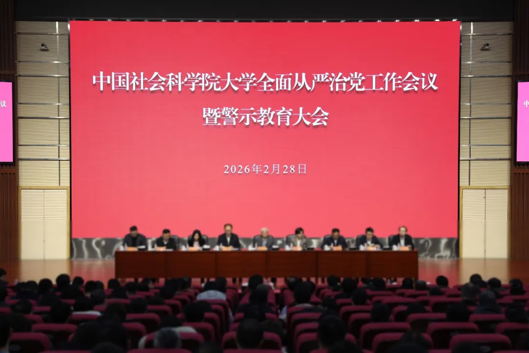 2026年2月28日,中国社会科学院大学2026年全面从严治党工作会议暨警示教育大会在良乡校区召开。会议深入学习贯彻中国社会科学院2026年全面从严治党工作会议暨全院警示教育大会精神和院党组扩大会议暨党的建设工作领导小组会议精神,对学校2026年全面从严治党工作进行部署,就学校树立和践行正确政绩观学习教育工作提出要求。校领导班子全体成员、院机关有关同志出席会议。