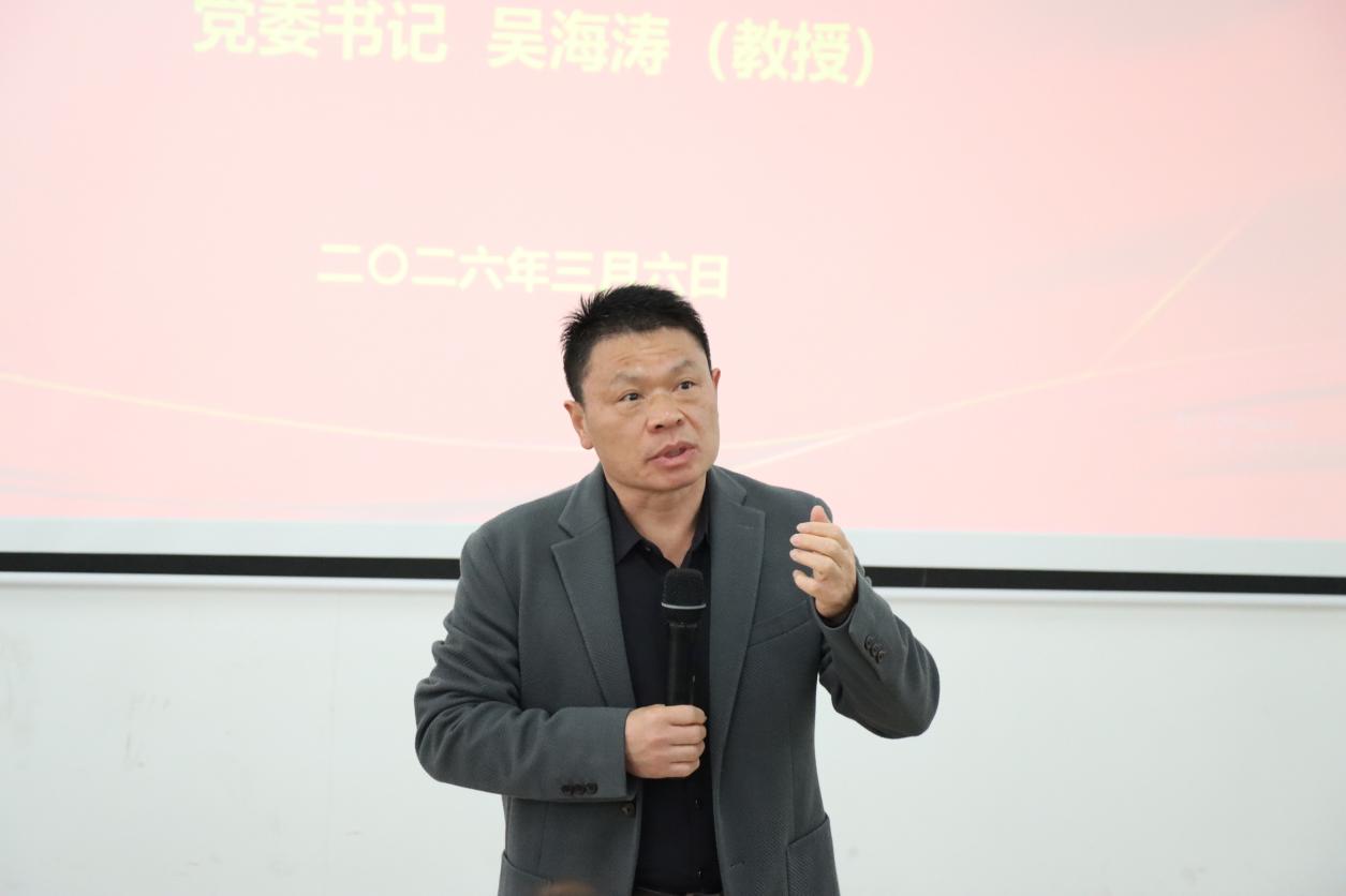 谈及“情怀”,吴海涛指出,情怀是立德树人的底色,是干事创业的动力。他结合学校办学定位,强调教育工作者要坚守教育报国初心,怀揣对学生、对教育、对地方发展的赤诚,将家国情怀、教育情怀融入教书育人全过程,用心呵护每一位学子成长;希望青年学子厚植家国情怀,铭记时代嘱托,把个人成长与国家发展、地方建设紧密结合,传承工匠精神、涵养高尚情操,做有温度、有情怀、有格局的新时代青年。