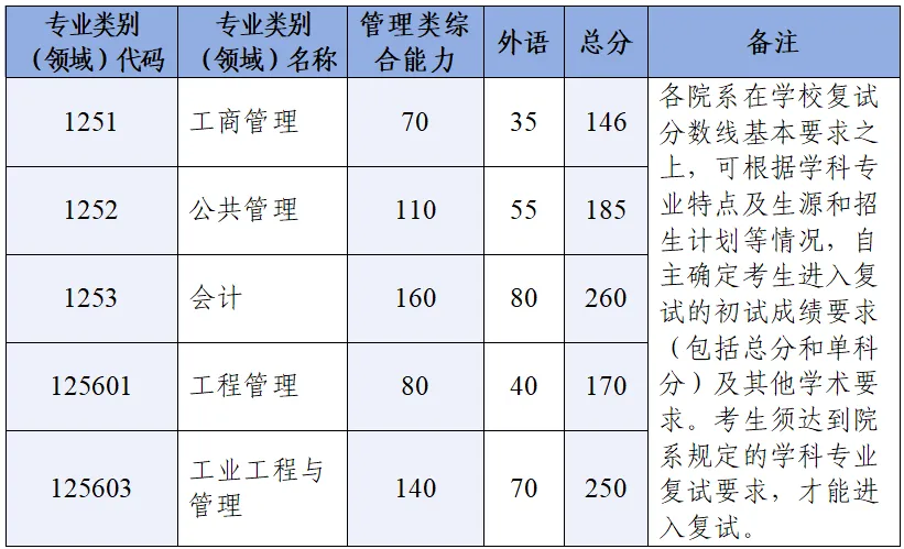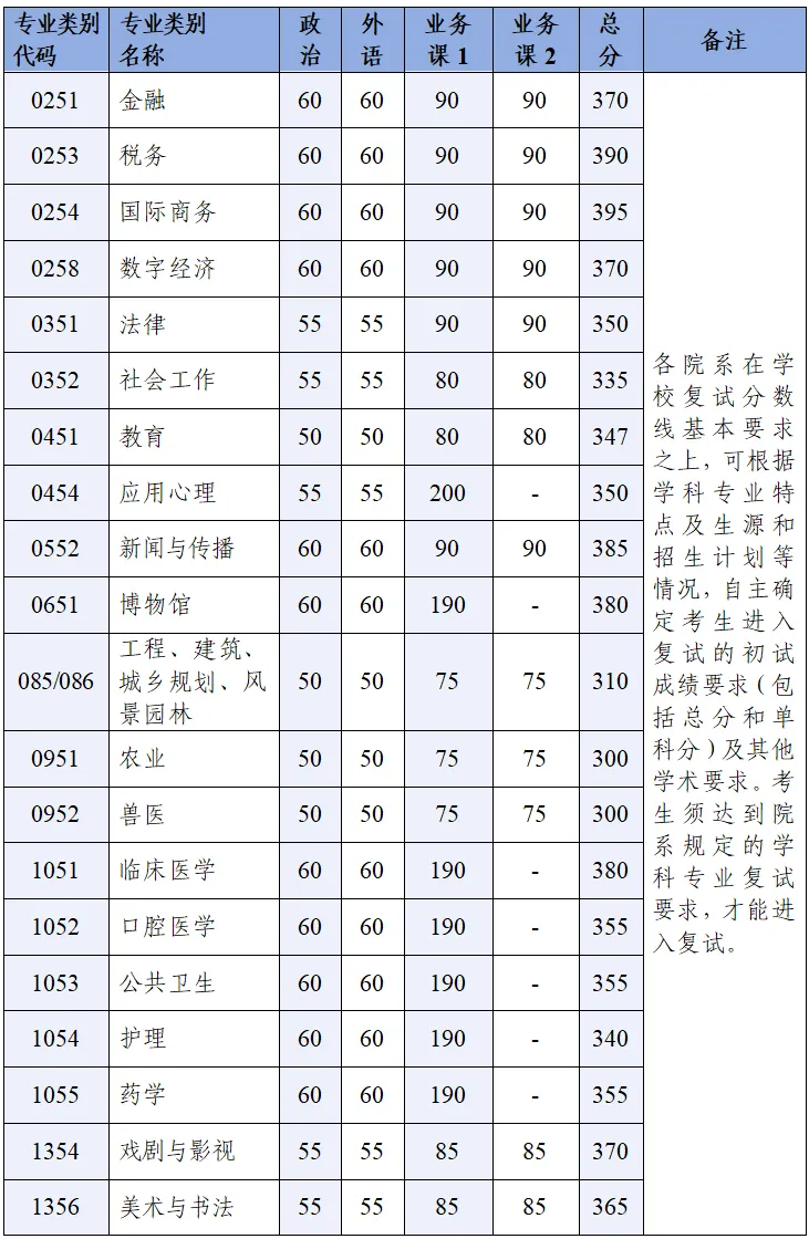 总分和单科成绩均满足所报考专业在上表中学校基本分数线的要求,可参加差额复试。