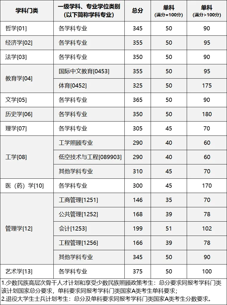 一、各学科专业初试合格基本分数线