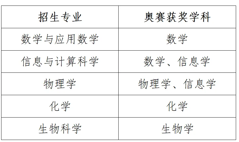 我校将对在数学、物理、化学、生物学、信息学奥林匹克竞赛中获得全国决赛二等奖及以上奖项的报名考生审核其相关学科领域的竞赛成绩,审核通过后可以破格入围。审核通过的破格入围考生高考成绩须达到所在省(自治区、直辖市)同科类部分特殊类型相应最低录取控制分数线。