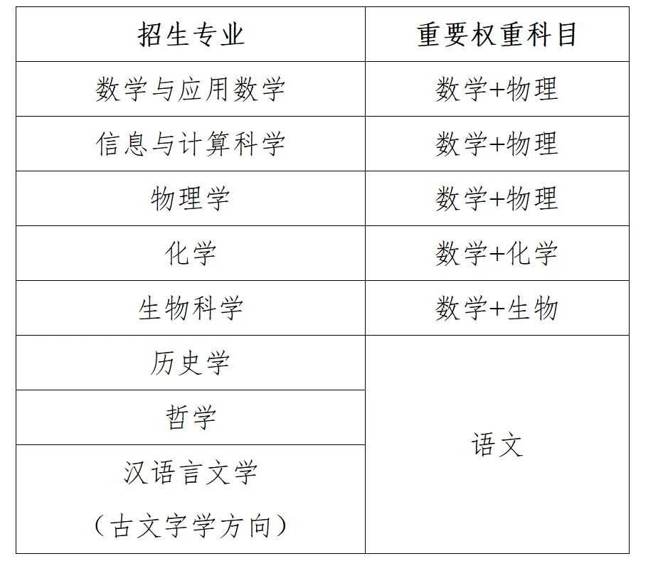 入围成绩=重要权重科目高考成绩*1.5+其他科目高考成绩之和