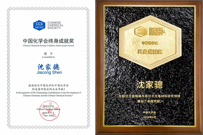 4月11日至14日,中国化学会第35届学术年会在重庆市科学会堂举行。中国科学院院士、吉林大学化学学院沈家骢教授因在超分子自组装与高分子光电材料研究领域做出了卓越贡献,获颁第五届中国化学会终身成就奖。