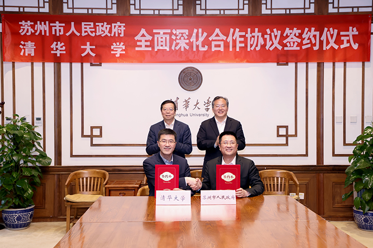 会上,毛伟、过勇代表双方签署《苏州市人民政府 清华大学全面深化合作协议》。昆山市副市长朱叶华、清华大学科研院院长刘奕群代表双方签署《昆山—清华人工智能创新引领行动专项合作协议》。