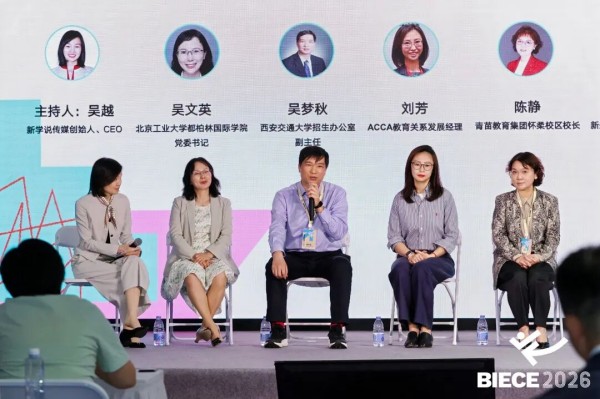 “新高考·多元升学与生涯发展”分论坛聚焦新高考背景下的多元升学路径与生涯规划,邀请来自高校招生、教育评价、中外合作办学等领域的专家,带来兼具政策深度与实践价值的分享。中国教育发展战略学会教育评价专业委员会副秘书长江爱萍探讨AI时代下多元升学路径选择;西安交通大学招生办公室副主任吴梦秋解读强基计划与拔尖创新人才培养;北京工业大学都柏林国际学院党委书记吴文英聚焦中外合作办学的国际化与本土化融合,分享中国同频的国际化教育实践。ACCA、青苗教育集团等机构围绕打破专业信息差、新时代国际化升学路径规划展开主题演讲。在圆桌对话环节,嘉宾们以“生涯布局前置,破解家庭升学焦虑” 为主题展开对话,为家长和学生提供可落地的升学规划思路。