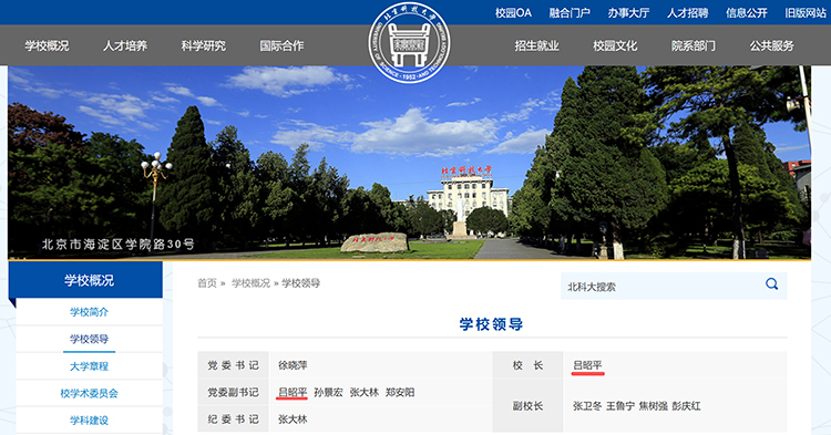12月24日,北京科技大学官网“学校领导”一栏显示,吕昭平已任北京科技大学党委副书记、校长。
