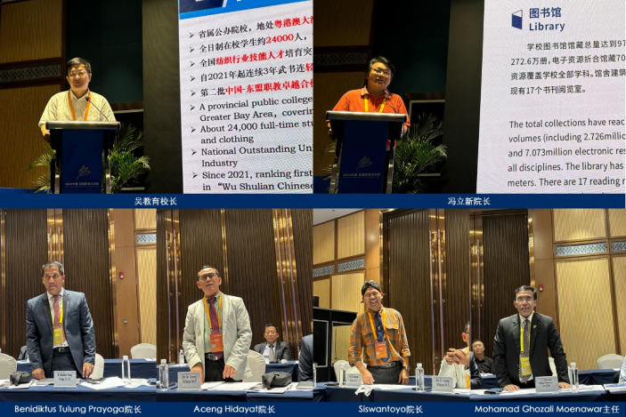 随后,广东职业技术学院校长吴教育、华南农业大学国际教育学院院长冯立新、UGM大学职业学校副院长 Benidiktus Tulung Prayoga博士、茂物农业大学职业学校院长Aceng Hidayat博士、UNY大学研究生院院长Siswantoyo博士、艾资哈尔大学国际事务部主任Mohamad Ghozali Moenawar博士分别就两国职教教育情况,以及中国-印尼国际化合作的探索与实践发表主旨演讲。