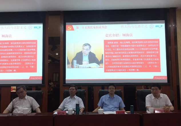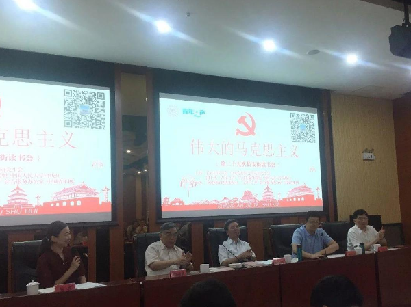 6月23日为了纪念马克思诞辰200周年,帮助广大党员干部、青年学生深入学习马克思主义,由长安街读书会联合中央党校研究生院研究生会、团中央“青年之声”学习者服务联盟、中国人民大学出版社主办,全民阅读促进委员会、中国青年网、“青年之声”综合服务办公室承办,共同在中央党校发起了第二十五次长安街读书会暨“伟大的马克思主义”集体读书学习活动。本次活动围绕《马克思与世界》、《建设世界上最强大的政党》两本书,特邀十八届中共中央政治局集体学习主讲专家、原中央党校校委韩庆祥,十八届中共中央政治局集体学习主讲专家、教育部原党组成员顾海良,原中央编译局秘书长杨金海,中央党校(国家行政学院)科学社会主义教研部副教授刘晨光作为活动嘉宾,从书本到现实,从理论到实践,共同讲述马克思主义及其中国化的伟大魅力。读书会由财政部陈宸主持。