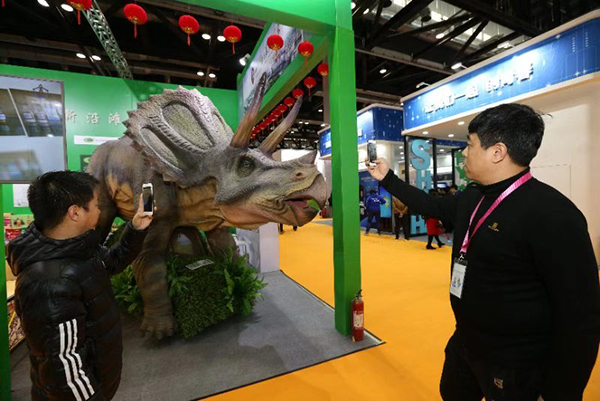 四川自贡新材料制作的恐龙引起观众的兴趣。李建泉/摄