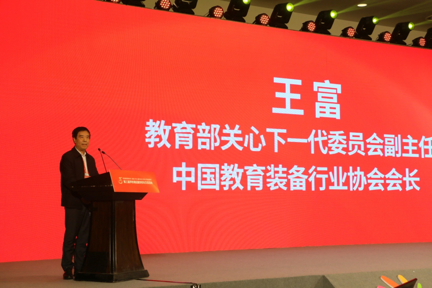 图为教育部关心下一代委员会副主任、中国教育装备行业协会会长王富主旨演讲。