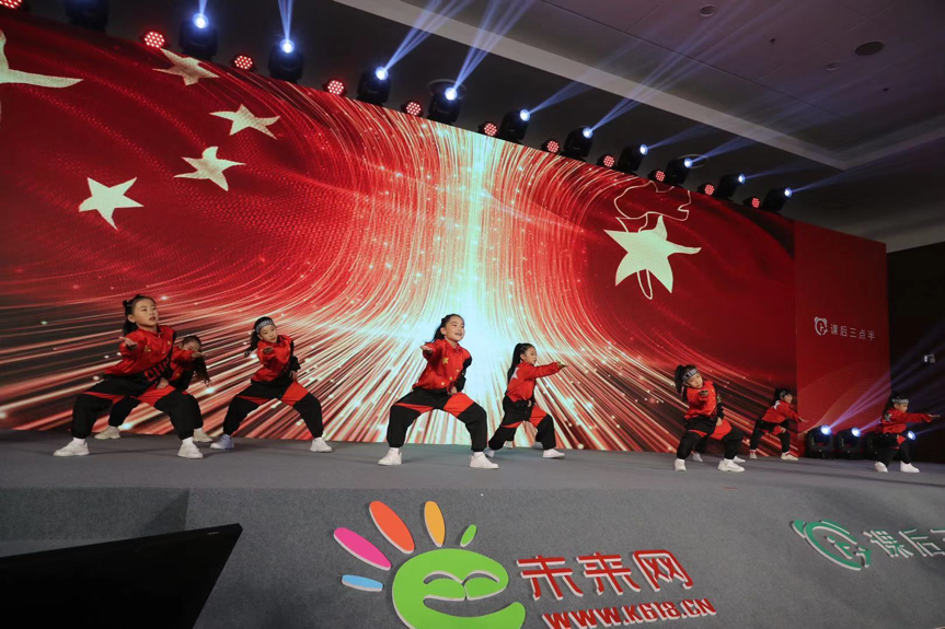 活动现场,来自未来家族街舞团向在场嘉宾表演开场舞《红旗飘飘》,展现了课后教育实践的优秀成果。