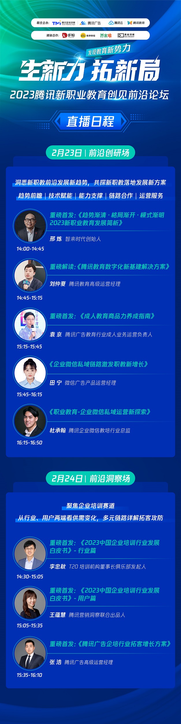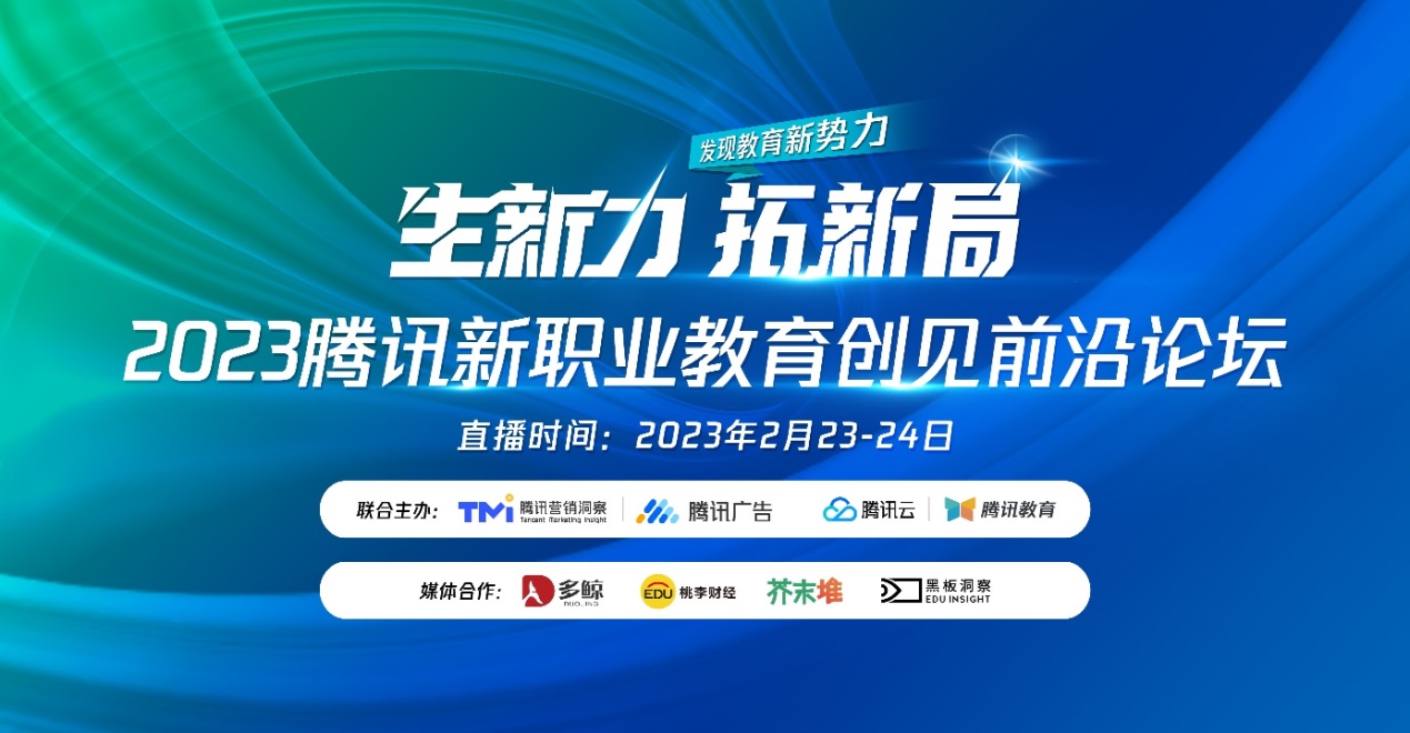 2月23日-24日,腾讯广告、腾讯教育联合内外生态伙伴共同发起2023腾讯新职业教育创见前沿论坛。